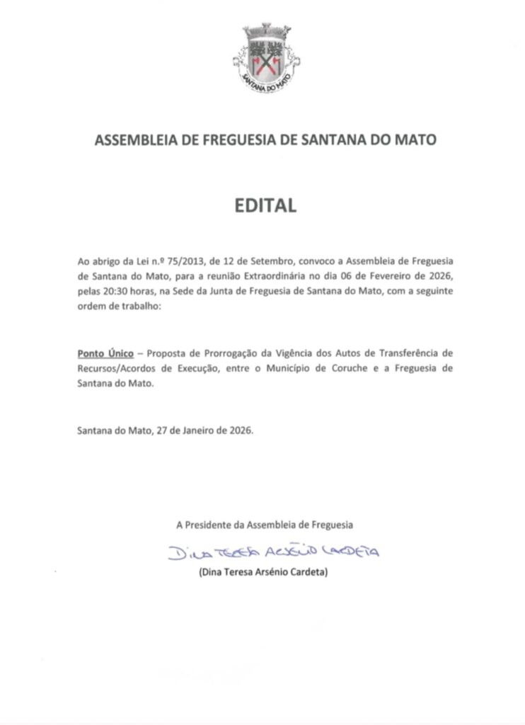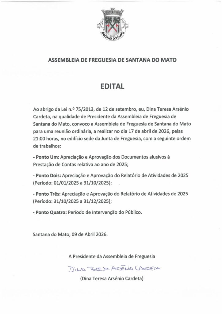 Edital nº 4 59ª Reunião Ordinária da Freguesia de Santana do Mato (Pagina 1)
